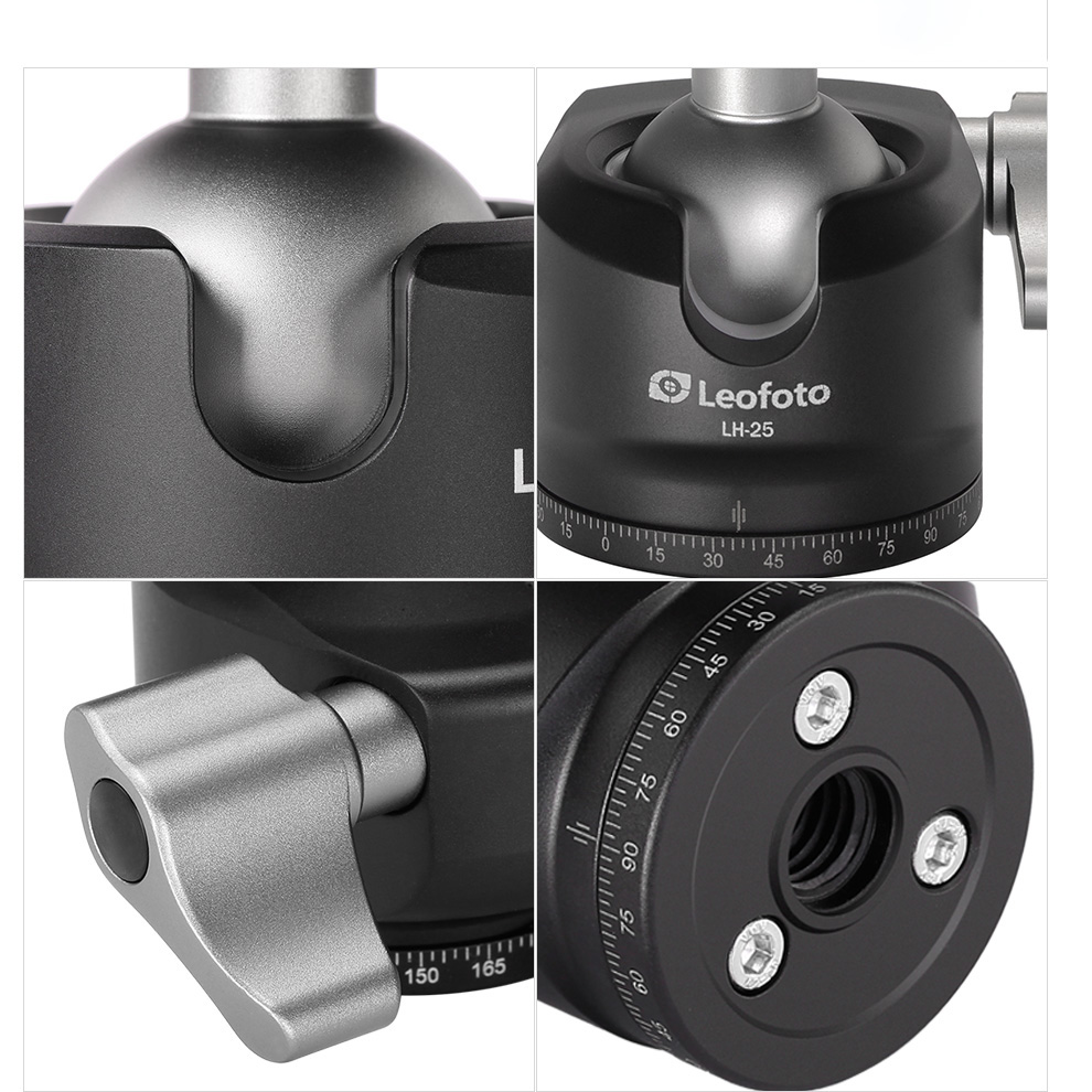 Mit einem Kugeldurchmesser von 25mm gehört der LH-25 zu den kompaktesten Kugelköpfen in der LH-Serie. Mit nur 172g stemmt der Stativkopf immerhin ein Gewicht von bis zu 6kg – was ausreicht, um eine Vollformatkamera inkl. Objektiv zu tragen. Zudem ist der Kopf sehr präzise und hat den Vorteil einer vergleichsweise tiefen Bauhöhe (LH=Lowprofile Head).