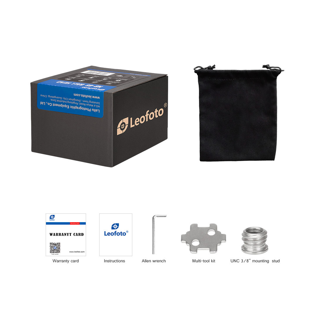 | Lieferumfang | Kugelkopf, Wechselkupplung, Stativplatte, Schraubzubehör (siehe Foto) |