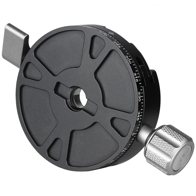 Trotz ihrer umfangreichen Funktionen bleibt die Panorama-Kupplung angenehm kompakt und leicht. Mit einem Basisdurchmesser von 52 mm und einem Gewicht von rund 120 Gramm ist sie ideal für mobile Setups geeignet, ohne dabei an Stabilität einzubüssen. Gefertigt aus hochwertigem, harteloxiertem Aluminium, überzeugt sie durch eine langlebige und präzise Verarbeitung – perfekt für den regelmässigen Einsatz im Feld oder im Studio.