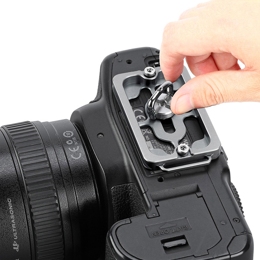 Die NP-65T Titan-Platte ist die erste Stativplatte aus festem Titan – kein anderes Material meistert die Balance zwischen Stabilität und Leichtgewicht besser. Die NP-65T ist aus massivem Titan gefräst (CNC), wodurch die Bauhöhe der Arca-Swiss Platte auf ein Minimum (nur 7mm) reduziert werden kann. Die Stabilität des Materials ermöglicht viele Ausfräsungen, um so das Eigengewicht trotz grosser Spannweite auf lediglich 32 Gramm zu minimieren. Die enthaltene, grössere D-Schraube ermöglicht zudem ein praktisches Festziehen von Hand – damit ist kein Werkzeug mehr notwendig. Sicherheitsschrauben und Gurtlasche sind ebenfalls enthalten. Die Stativplatte hat mit der NP-65T eine kleine Revolution erlebt – optimiert in jedem Aspekt.
